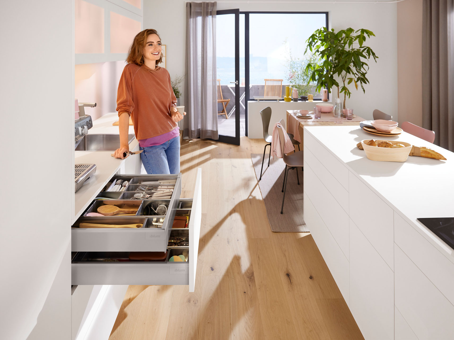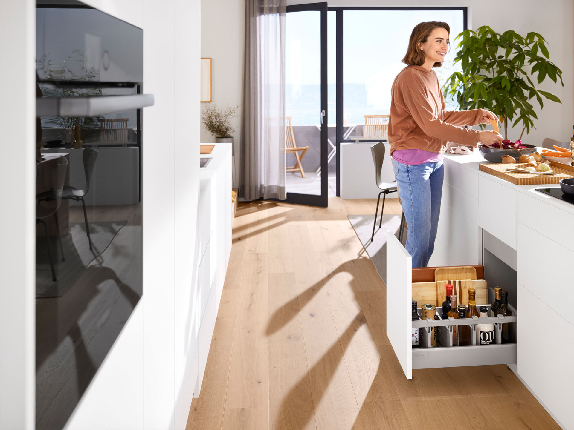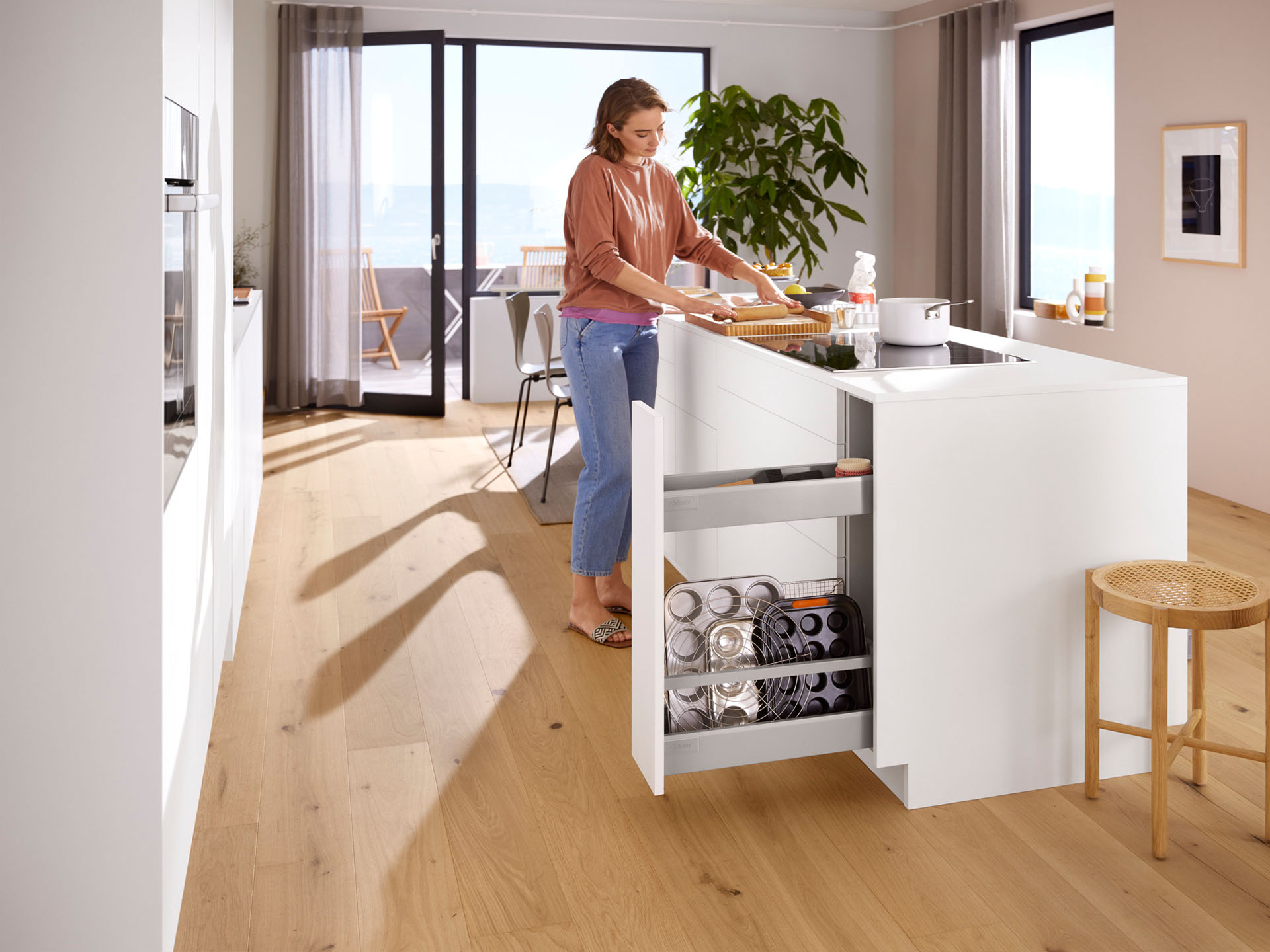 With this in mind, it’s important to accurately measure your available space, from floorplan to wall size. This will allow you to map out your potential layout and determine how much flooring you’ll need, figure out whether you’ll require tall tower units to maximise room, and plan where to position your fridge, freezer, cooker and dishwasher for practical use.